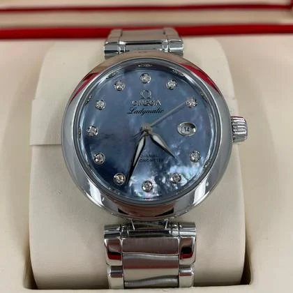 - Perlage finished bezel and case back- Decorative blue screws inside movement