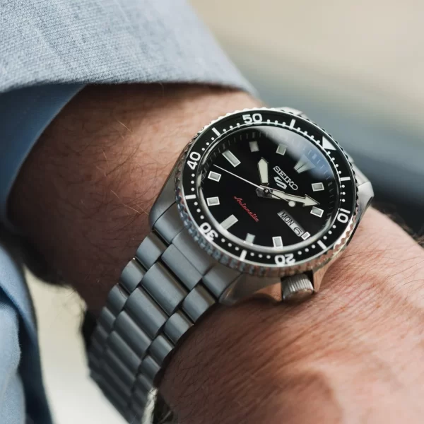 Paying homage to Seiko’s iconic SKX models of the past, this creation inherits the layout of the original, featuring indexes with a rich texture and hands with a distinct, yet refined design.